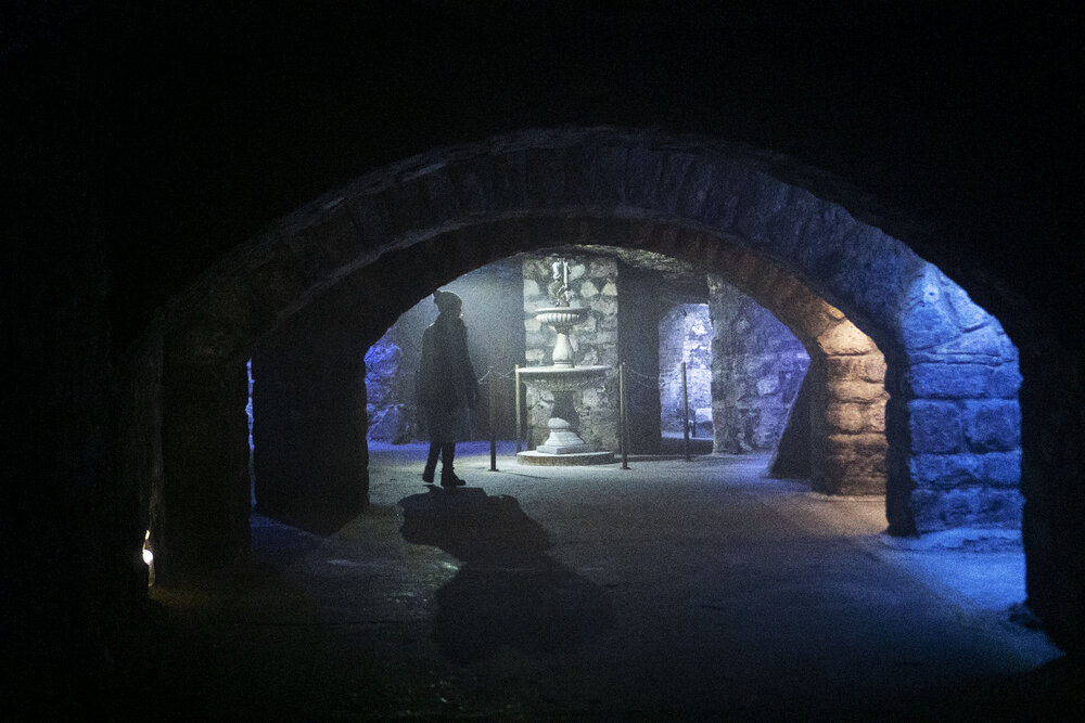 地下迷宮長達1000米長,伴隨著滴噠水聲和音樂,我們越走越有密室逃脫的感覺,越走感覺越驚悚,來到地下迷宮其中一個密室,濃濃煙霧,突然開始伸手不見五指,音樂怪異,氣氛陰森,感覺隨時有蝙蝠會衝出來,密室中間有一個雕像守護著,竟是德古拉伯爵的墓碑! 一個大大的人籠,還有長矛穿刺著人頭!恐怖神秘的地下迷宮,毛骨悚然的感覺縈繞不去,布達地下迷宮,一定要有膽子或是結伴參觀 !