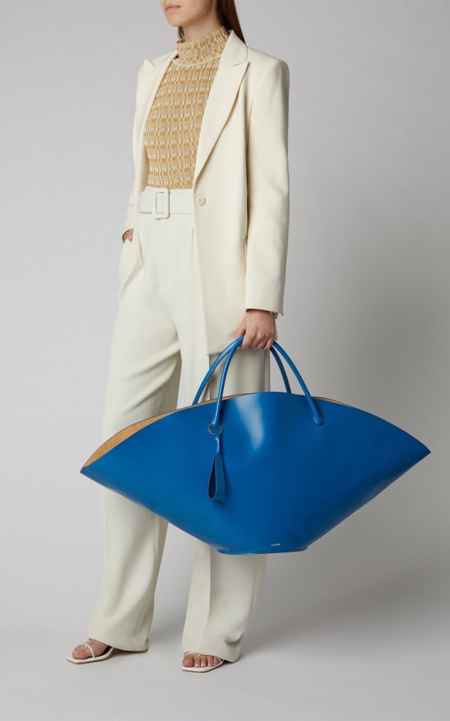 另一方面,超大手提袋是今年春夏流行款式之一,XL比例越大越好。當我們習慣將包的內容物限制在最低限度時,巨大的隨身手提袋的優點,幾乎與行李箱大同小異。令人耳目一新的實用性和不受限制的空間相當吸引人,可以容納電腦、錢包、雨傘、化妝包、筆記本、隨身攜帶的其他小提包,加上令人印象深刻的設計,大型包包立即受到時尚人的歡迎。