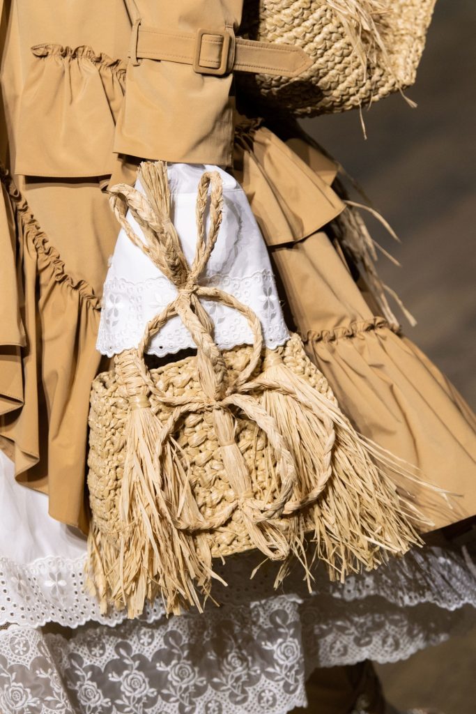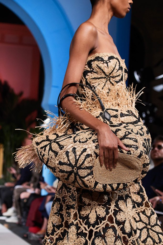天然材質和鄉村風格的愛好者,一定會喜歡用草編而成的2020年春夏季手提袋,水桶造型,看起來就像籐編籃子一樣! JW Anderson的草編包用了黑色原色雙色編織而成,增添了精緻感,而Oscar de la Renta包上編織出黑色的花朵,和針織洋裝相同圖案搭配,極為出色。