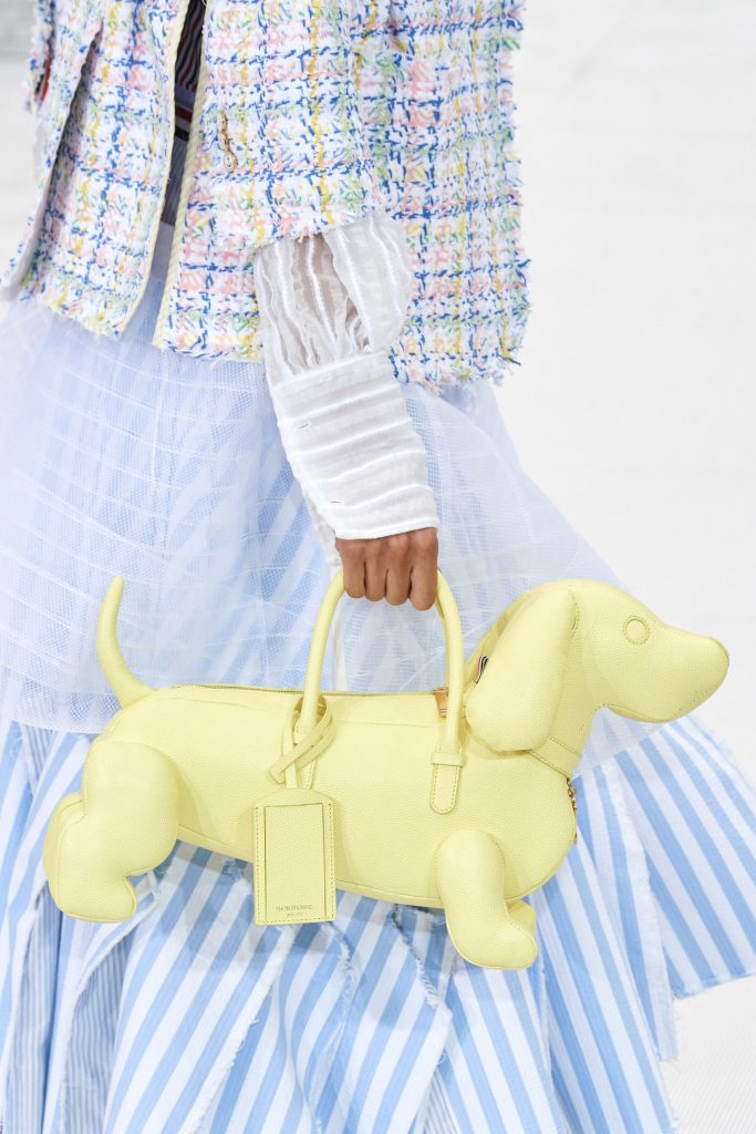 偽裝變形的包袋永遠是我們的最愛,設計師每年都會發布變形的手提包,2020春夏偽裝包的趨勢是-讓包袋變形成更引人注目的形狀,看起來像是生活常見的東西。 JW Anderson偽裝包設計是棒球帽,Louis Vuitton 設計年輕世代可能不知道的磁帶包,Pyer Moss的偽裝包形狀,像是縮小版吉他手提箱,另外Thom Browne可愛寵物也變身,偽裝成提包登場!