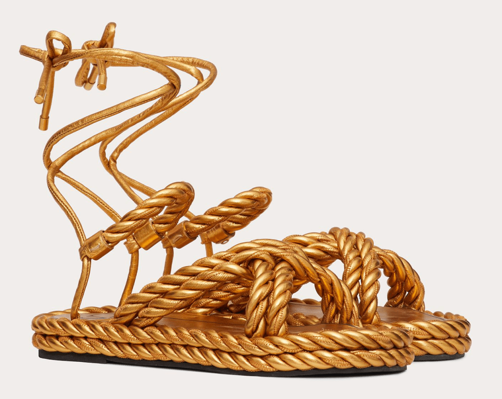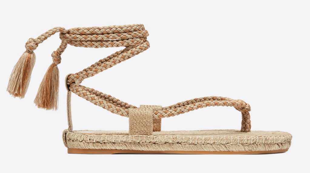 經典不敗的羅馬涼鞋、斯巴達戰士鞋,無論是棉線編織、金屬繩結、麂皮綁帶的繞帶腳踝材質,都可以讓你輕易顯瘦顯腿長,帶來神話浪漫的感覺。像Dior這款的奶油色編織棉質鞋,鞋底用草蓆編織,吹來盛夏清新自然風,斯巴達戰士鞋,是炎熱夏天必備的清涼鞋款。