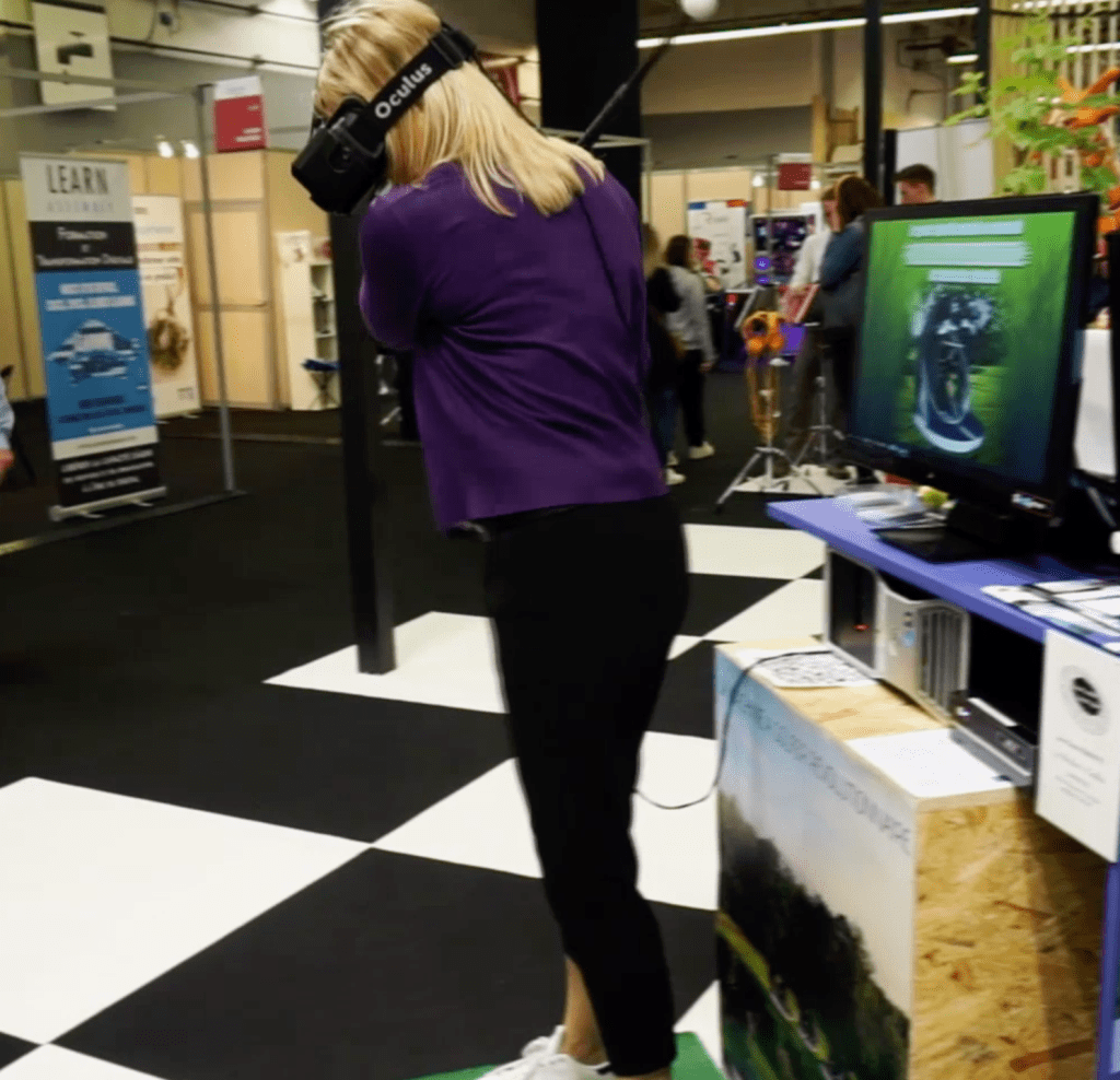 戴上3D的虛擬實境眼鏡,可以在任何情境盡情揮桿, 在「外太空、外星球」打高爾夫球也不是問題。還可以和其他VR健身遊戲玩家線上聊天,獲得更多健身技巧。虛擬健身Virtual Fitness讓人們花更少的時間,免於舟車勞頓往返於運動場所之間,節省會員費同時,也省一筆停車費,虛擬運動科技帶來新的生活風格與商業模式。